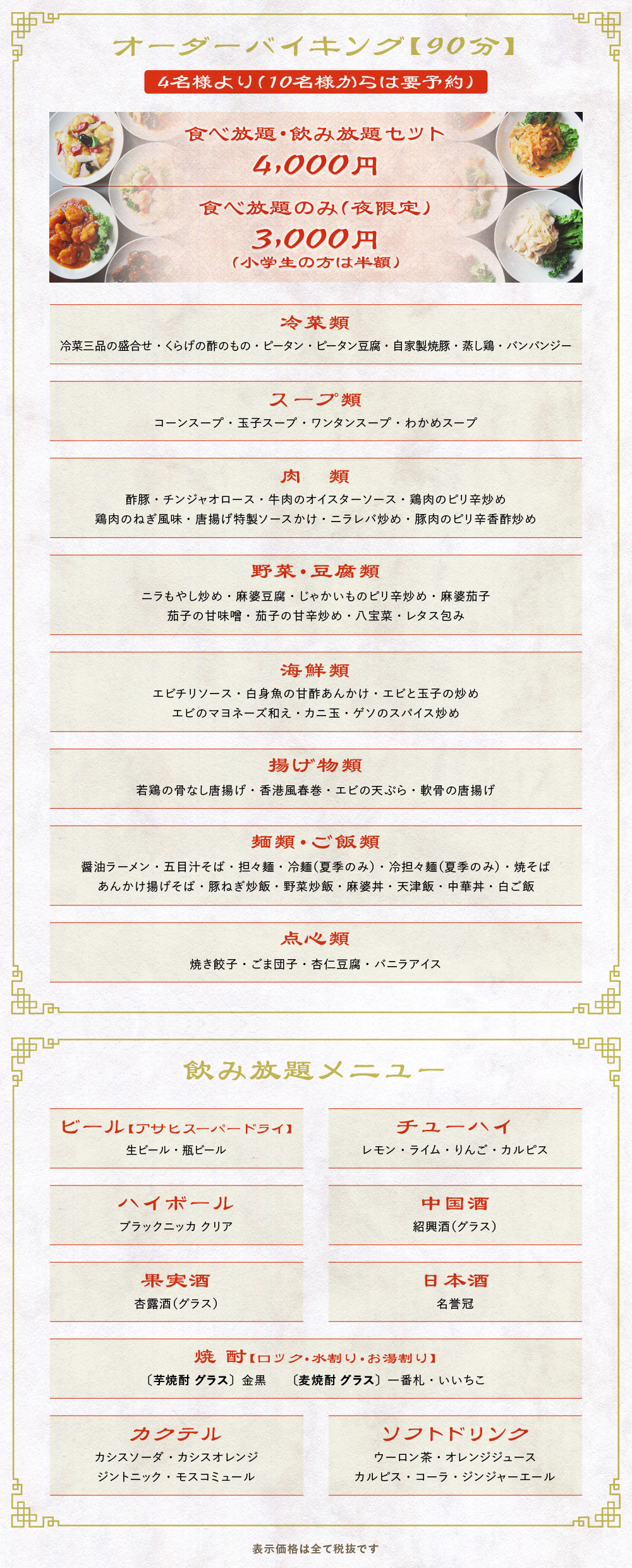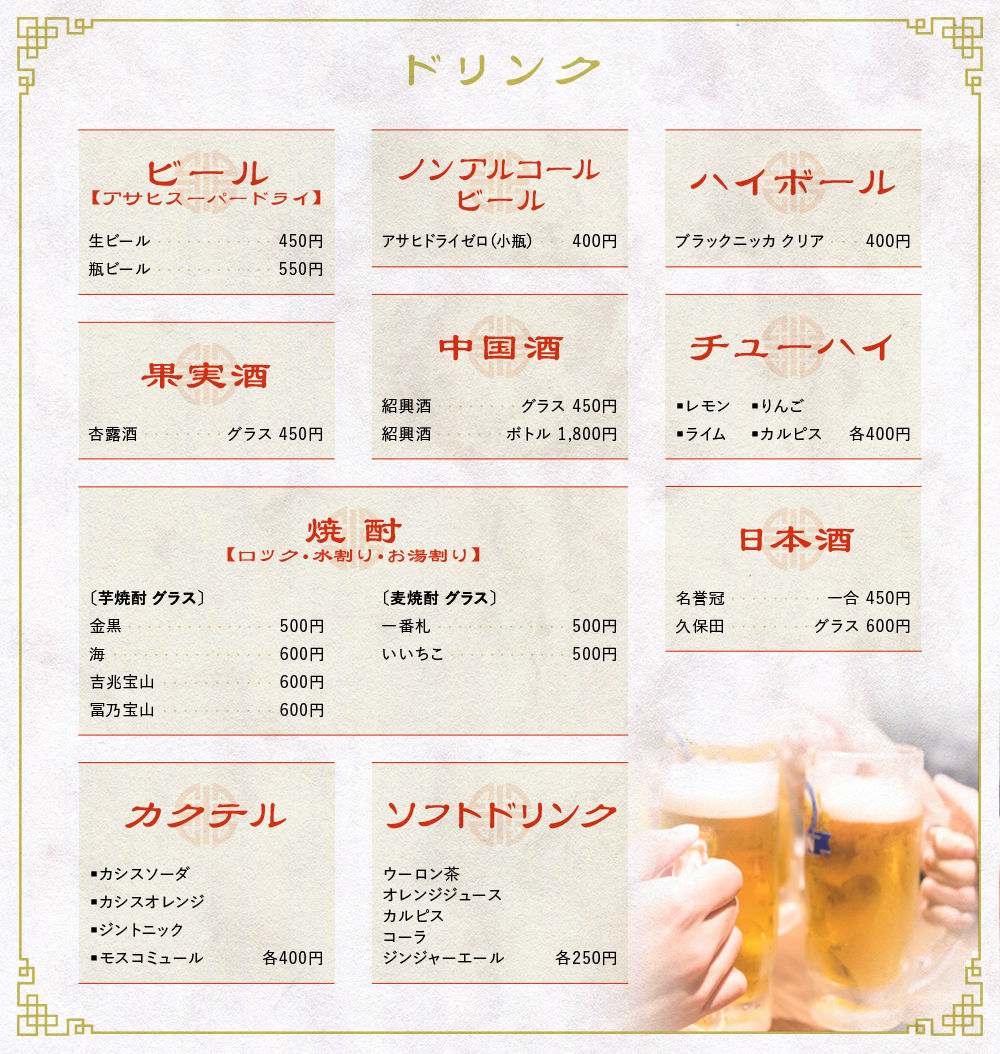 気軽な一品料理から贅沢なフカヒレまで、その日の気分に合わせた料理をご堪能ください。